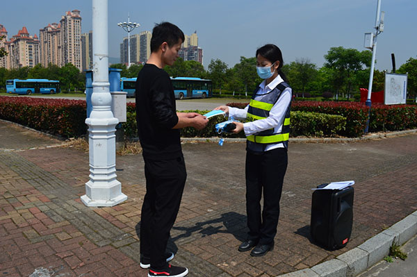 遇到沒有戴口罩的市民,我們的人員便立即上前為其講解當前疫情防控形勢,宣傳疫情防控小知識,做到勤洗手、戴口罩、不聚集等方式做好自我保護,并為其送上口罩。